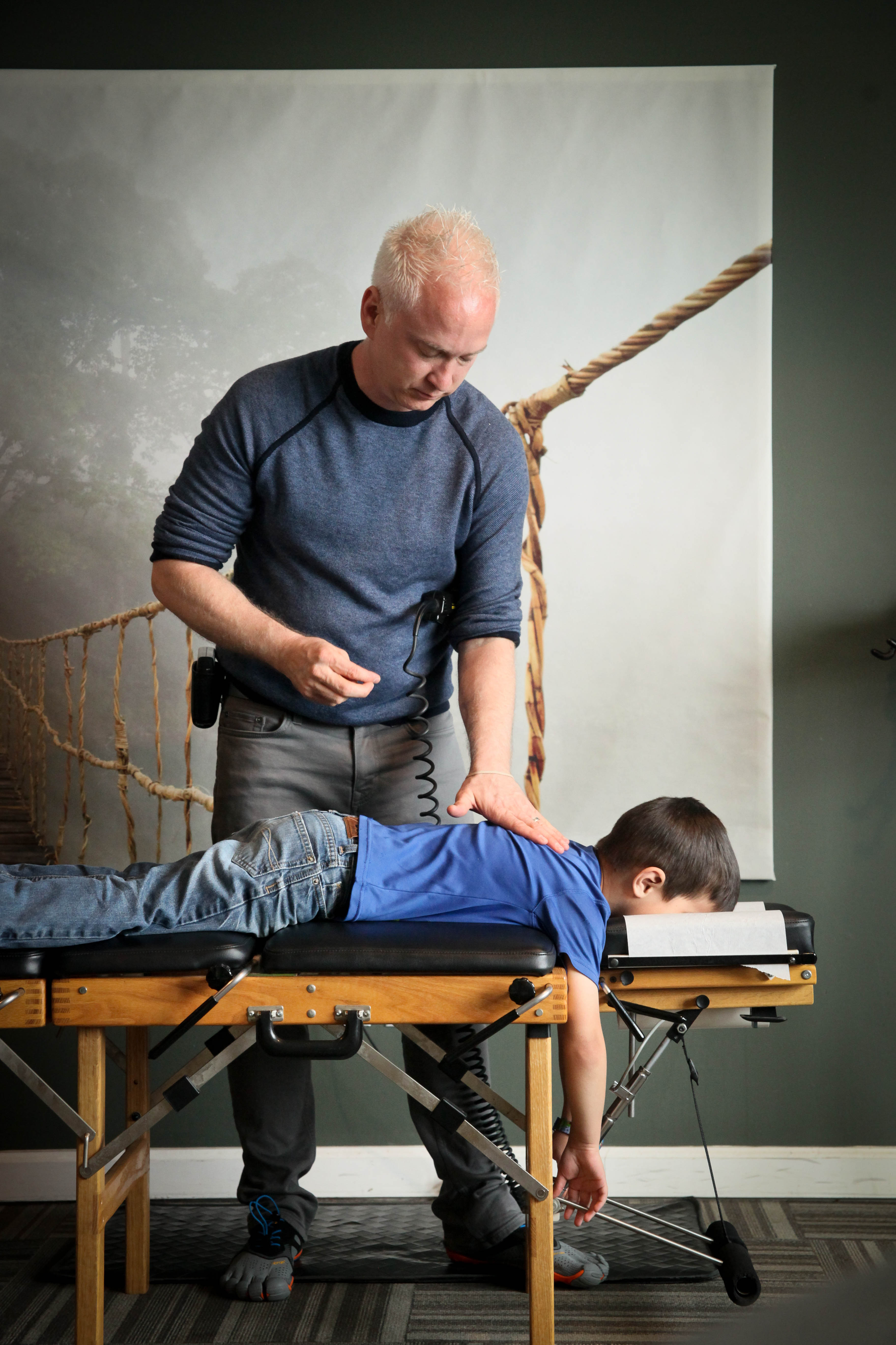 The ArthroStim delivers 10-12 taps per second that provide a result similar to a manual adjust but with less force. By using this tool Dr. Matt is able to be more specific to the body.